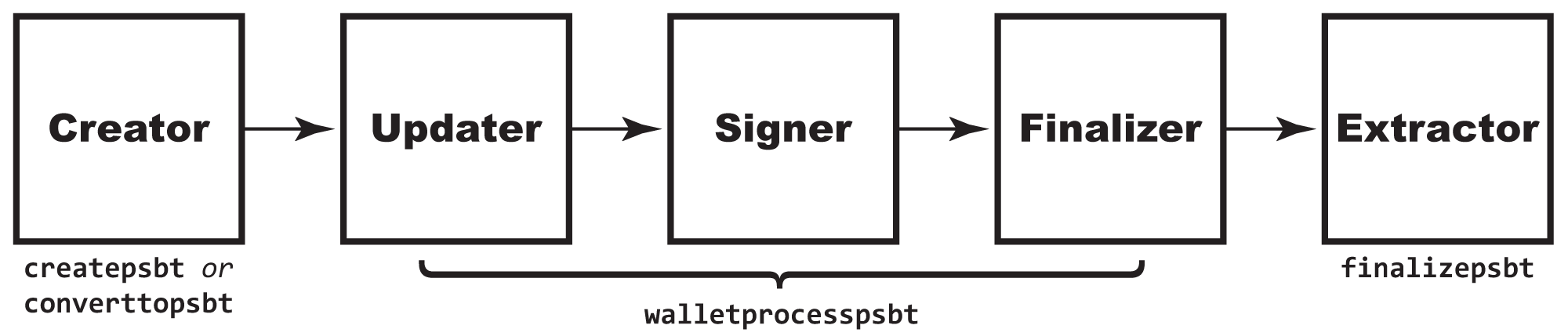 - Extractor turns the PSBT into a transaction for the Bitcoin network.