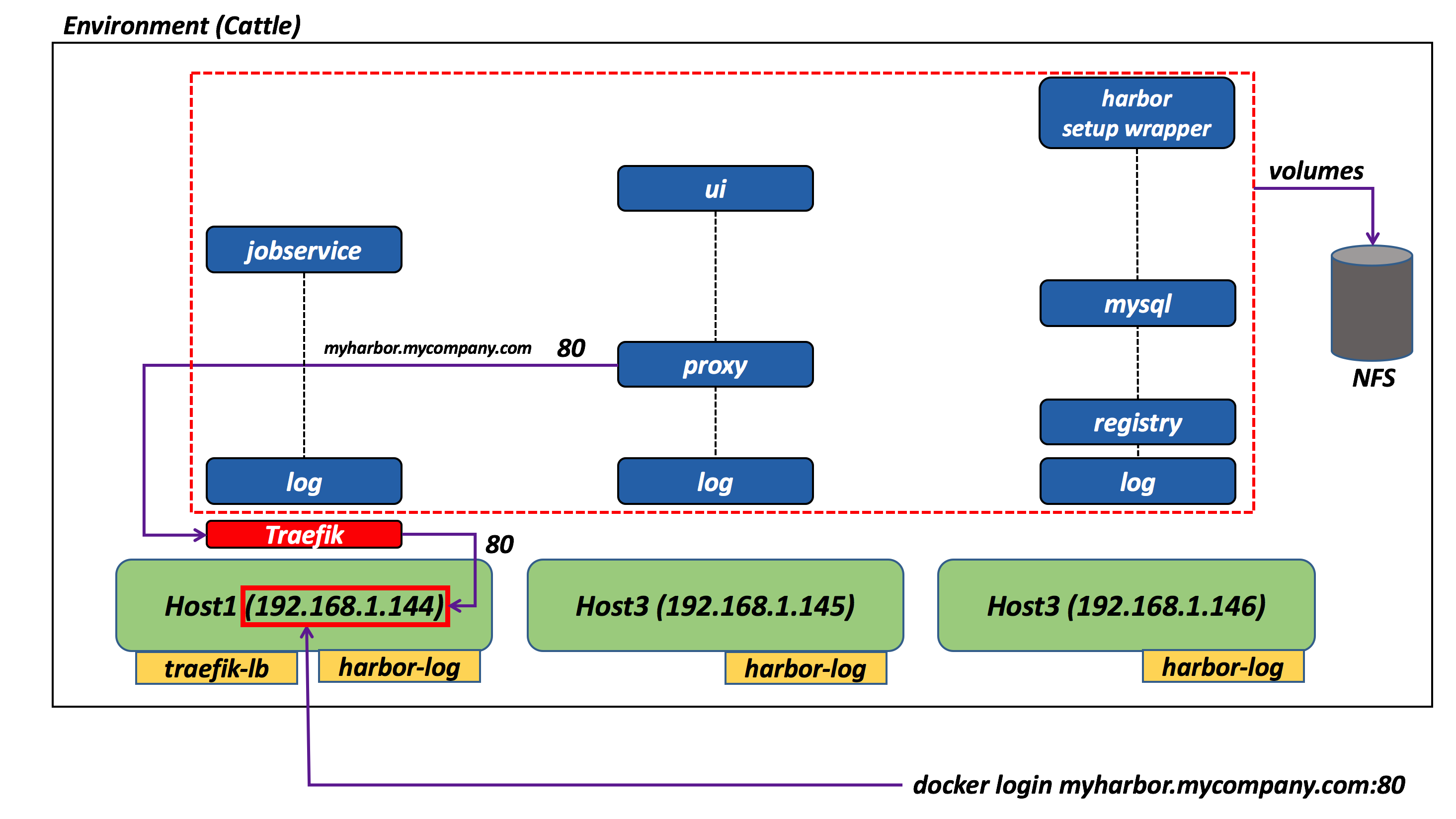 Also, Traefik needs to be enabled on one of the host and a proper DNS configuration needs to be in place.